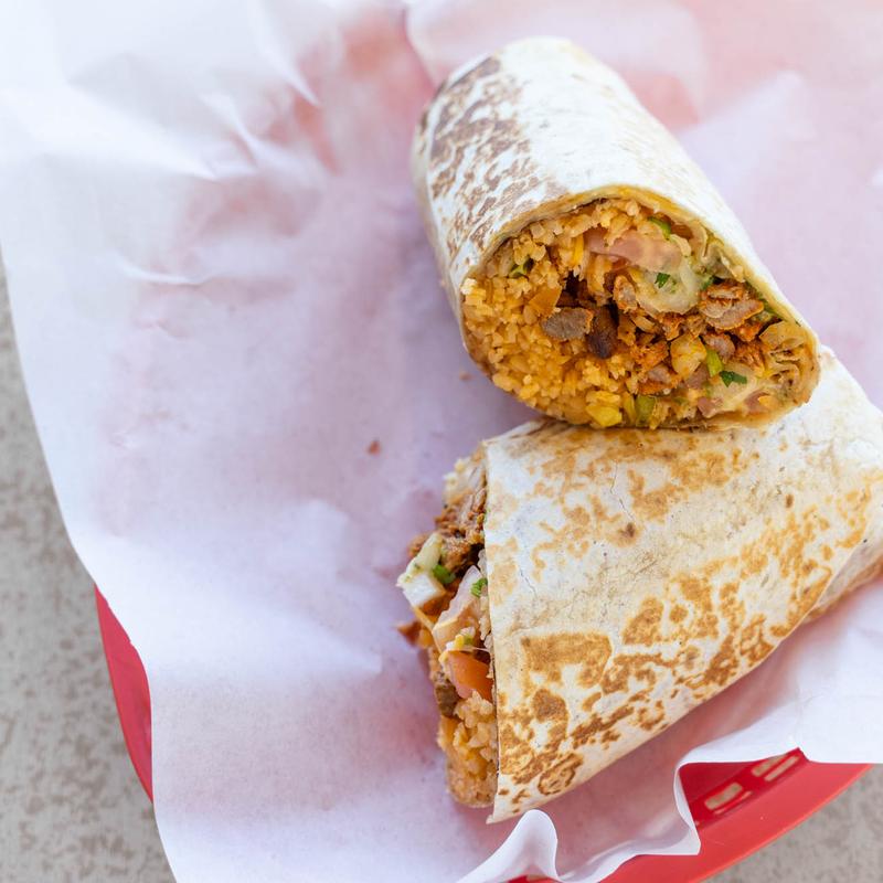 Flour tortilla, guacamole, beans, rice, pico de gallo, sour cream & cheese • Make it a Plate with rice, beans, and salad for $4.00