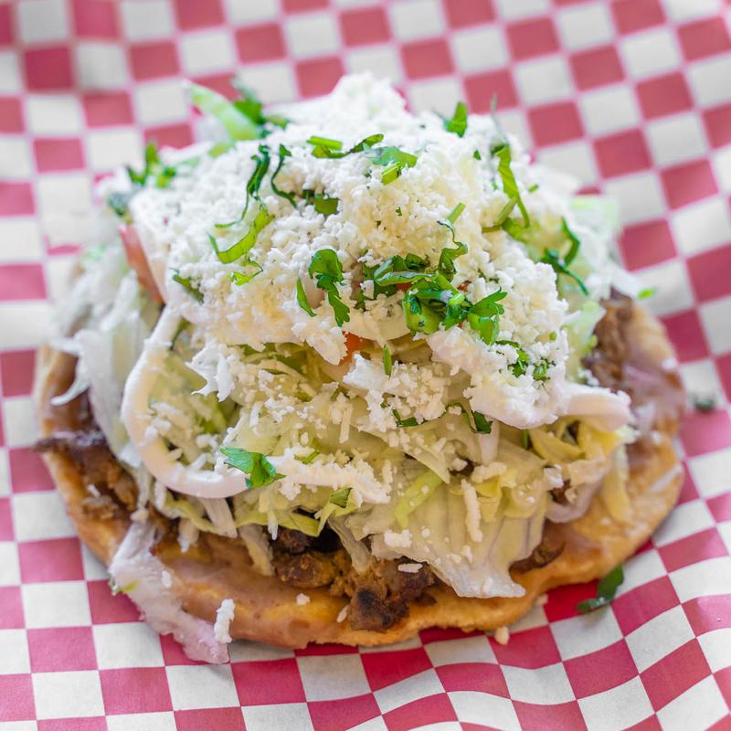 Refried beans, lettuce, tomato, onions, cheese, cilantro, sour cream • Make it a Plate with rice, beans, and salad for $4.00