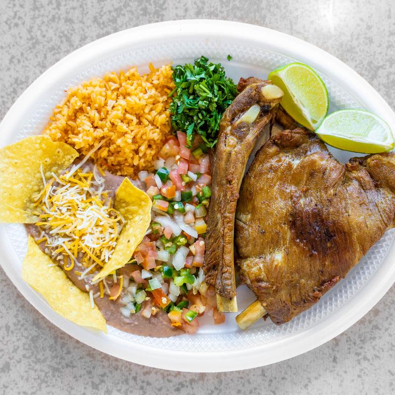 Housemade corn tortillas, onions, cilantro, & lime OR Flour tortilla, cheese, lettuce • Make it a Plate with rice, beans, and salad for $4.00